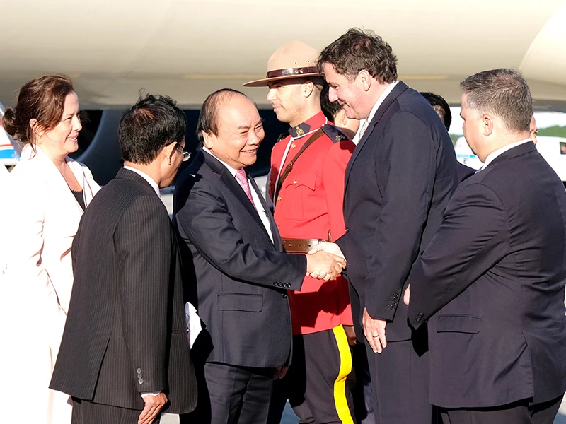 Đón Thủ tướng Chính phủ Nguyễn Xuân Phúc và đoàn cấp cao VN tại sân bay có bộ trưởng Chính phủ Liên bang, bộ trưởng bang Québec, Đại sứ VN tại Canada Nguyễn Đức Hòa cùng đông đảo cán bộ, nhân viên Đại sứ quán VN tại Canada.