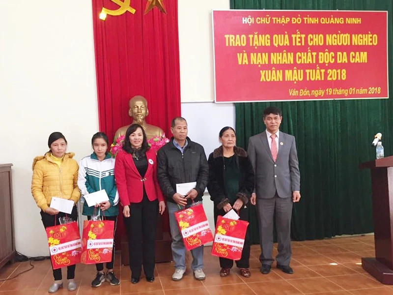 Hưởng ứng phong trào “Tết vì người nghèo và nạn nhân chất độc da cam” xuân Mậu Tuất 2018, Hội Chữ thập đỏ tỉnh Quảng Ninh đã trao quà Tết cho 35 hộ nghèo có hoàn cảnh đặc biệt khó khăn, nạn nhân chất độc da cam trên địa bàn huyện Vân Đồn. Ảnh: Vũ Dũng (Trung tâm TT&VH Vân Đồn)