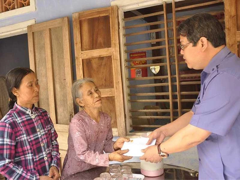 Thừa ủy quyền của Thủ tướng Nguyễn Xuân Phúc, ông Văn Anh Tuấn, Chánh Văn phòng UBND tỉnh Quảng Nam, đã đến thăm và trao 100 triệu đồng hỗ trợ cho gia đình ông Trương Văn Được. Ảnh: plo.vn