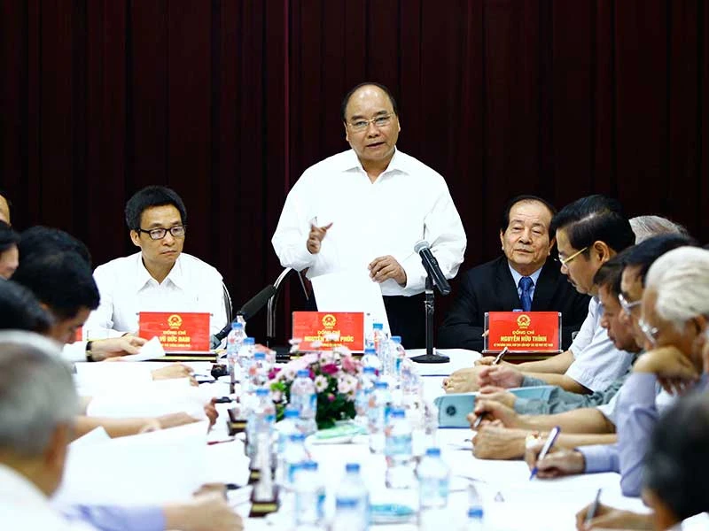 Thủ tướng Nguyễn Xuân Phúc làm việc với Liên hiệp Các hội văn học nghệ thuật Việt Nam chiều 4-8. Ảnh: TTXVN
