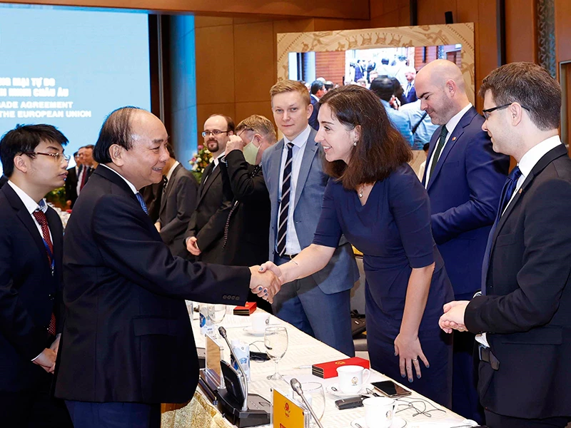 Phát biểu kết luận, Thủ tướng Nguyễn Xuân Phúc nhắc lại phát biểu tại lễ ký kết EVFTA vào ngày 30-6-2019 rằng khi có hiệu lực, hiệp định này sẽ như một tuyến đường cao tốc quy mô lớn, hiện đại, nối gần hơn giữa EU và Việt Nam. Từ đây, người dân hai bên dễ dàng hợp tác, giao lưu, các DN của hai bên có thể tiếp cận thuận lợi thị trường của nhau. “Như vậy, dù xe tải hay xe khách, đại bàng hay chim sẻ sẽ cùng đi, cùng bay trên cao tốc ấy” - Thủ tướng nói.