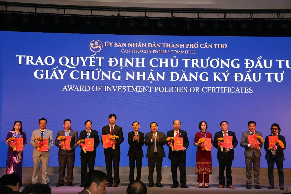 Lãnh đạo TP Cần Thơ trao quyết định chủ trương đầu tư, Giấy chứng nhận đăng ký đầu tư cho các doanh nghiệp.