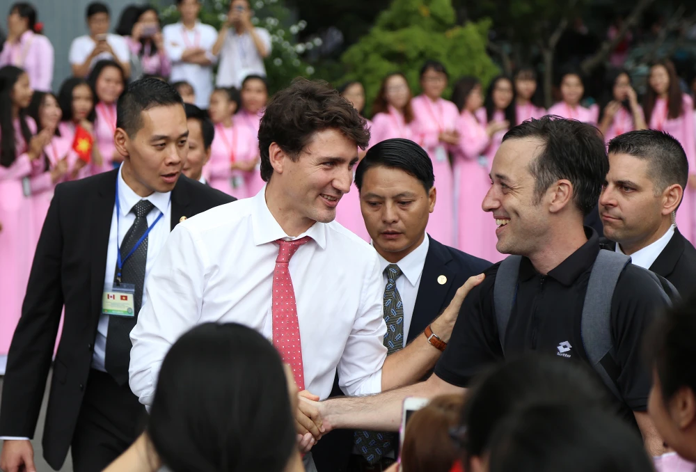 Thủ tướng Canada bất ngờ khi gặp một người quen tại buổi đón.