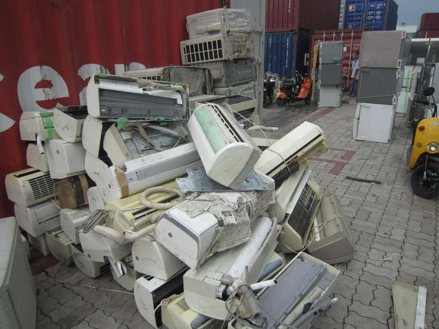 Một lô hàng điện lạnh đã qua sử dụng cũ nát cấm nhập khẩu bị phát hiện. Ảnh: baomoi