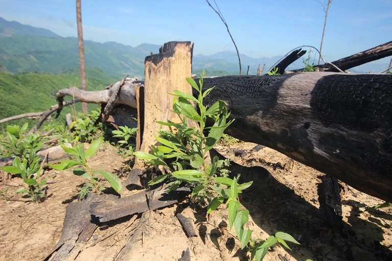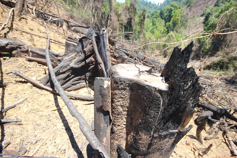 Nhiều cây gỗ bị đốn hạ và đốt cháy. Ảnh HUY TRƯỜNG