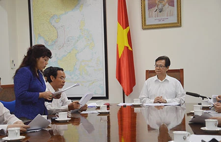 Thủ tướng Nguyễn Tấn Dũng đang nghe báo cáo của bộ trưởng Bộ Y tế. Ảnh: NGHĨA NHÂN