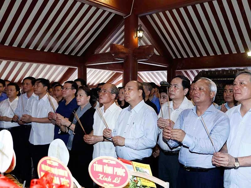 Thủ tướng Nguyễn Xuân Phúc, Chủ tịch Quốc hội Nguyễn Thị Kim Ngân, nguyên Chủ tịch Quốc hội Nguyễn Sinh Hùng cùng các đồng chí lãnh đạo thành kính dâng hương tưởng nhớ công lao to lớn của Chủ tịch Hồ Chí Minh.
