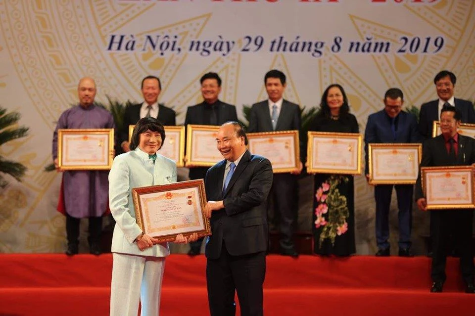 Thủ tướng Nguyễn Xuân Phúc trao danh hiệu NSND cho nghệ sĩ Minh Vương.