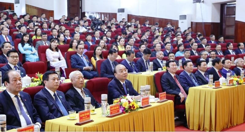 Các đại biểu và khách mời tại phiên bế mạc Đại hội đại biểu Đảng bộ tỉnh Hà Tĩnh. Ảnh: BHT