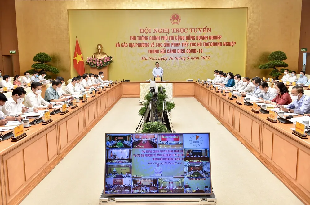 Sáng nay, 26-9, Thủ tướng Phạm Minh Chính chủ trì Hội nghị trực tuyến với cộng đồng doanh nghiệp cùng các địa phương bàn về những giải pháp tiếp tục hỗ trợ doanh nghiệp trong bối cảnh dịch COVID-19.