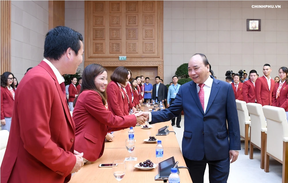 Thủ tướng tại buổi gặp gỡ với đoàn Thể thao Việt Nam. Ảnh Chinhphu.vn