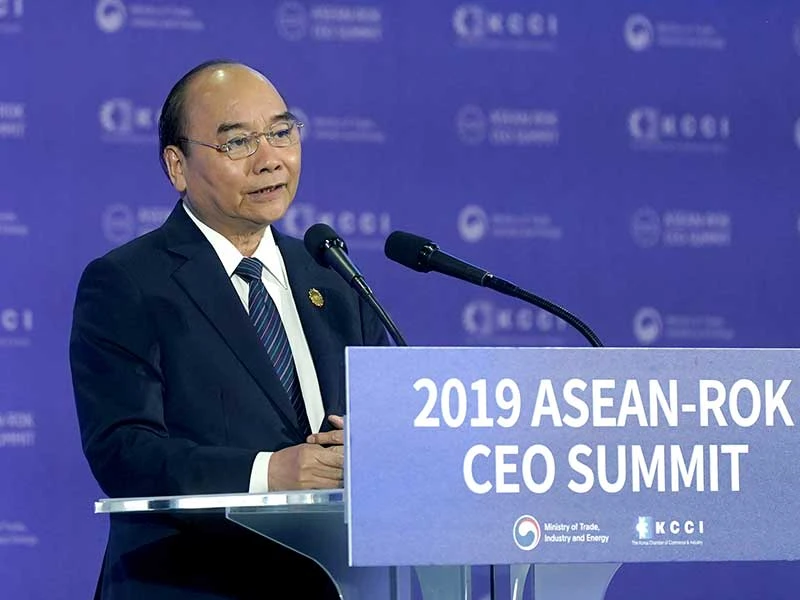 Thủ tướng cho biết Việt Nam-Hàn Quốc đang phấn đấu đạt 100 tỉ USD kim ngạch thương mại song phương năm 2020, chiếm 50% kim ngạch ASEAN-Hàn Quốc, đồng thời nêu rõ Việt Nam là đối tác thương mại đứng thứ ba của Hàn Quốc, chỉ sau Mỹ và Trung Quốc.