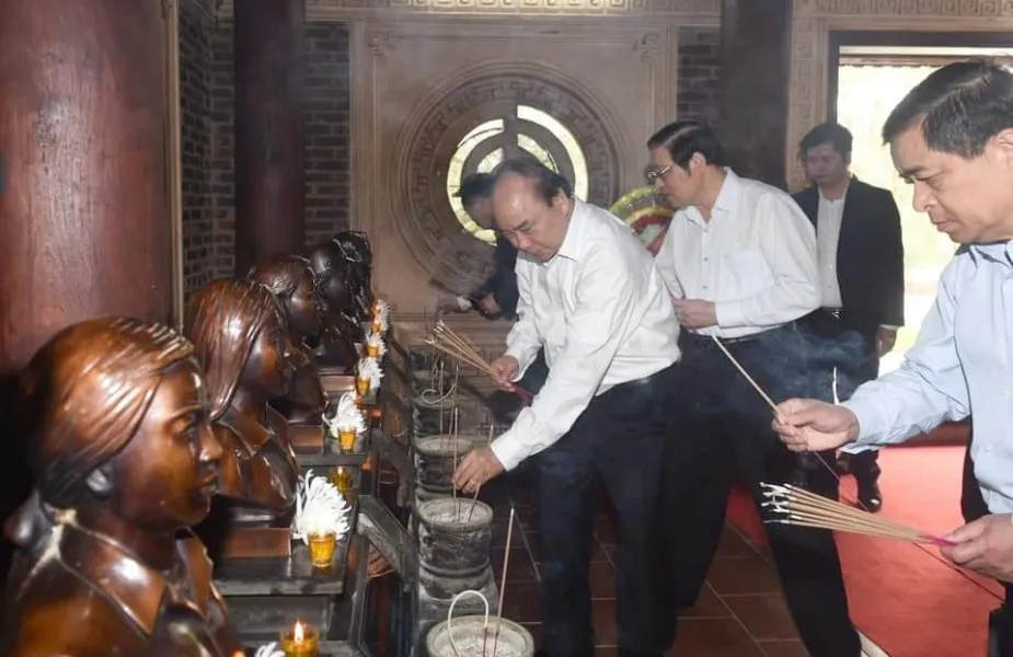 Thủ tướng Nguyễn Xuân Phúc cùng các đại biểu dâng hương tưởng niệm các anh hùng liệt sỹ tại Khu Di tích lịch sử Quốc gia Truông Bồn.
