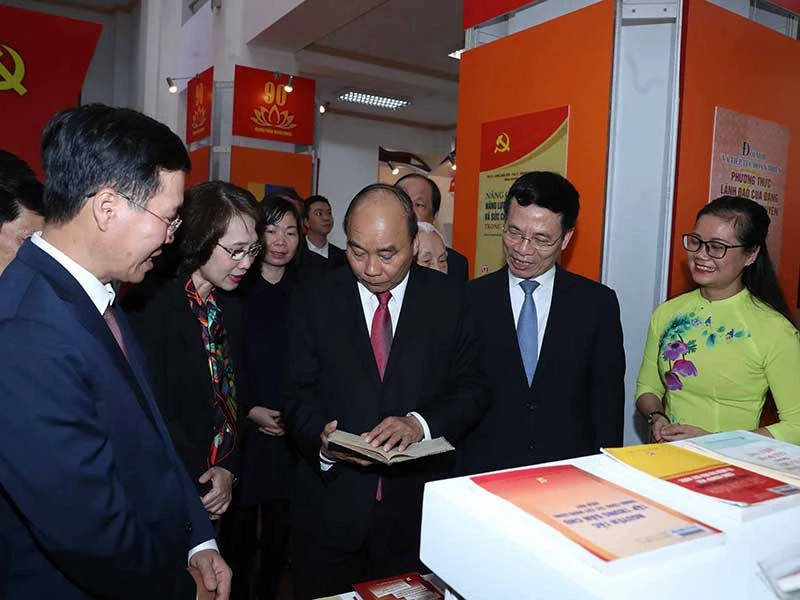 Thủ tướng Nguyễn Xuân Phúc tham quan Triển lãm sách kỷ niệm 90 năm ngày thành lập Đảng Cộng sản Việt Nam. Ảnh: TTXVN
