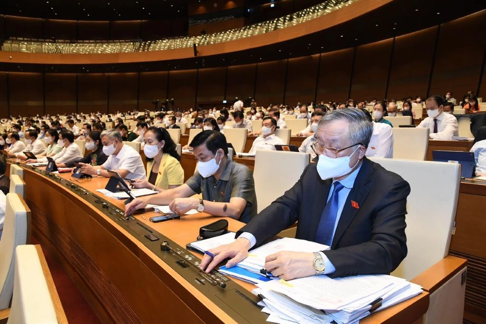 Đại biểu bấm nút thông qua Nghị quyết kỳ họp thứ Nhất, Quốc hội khóa XV. Ảnh: CTV