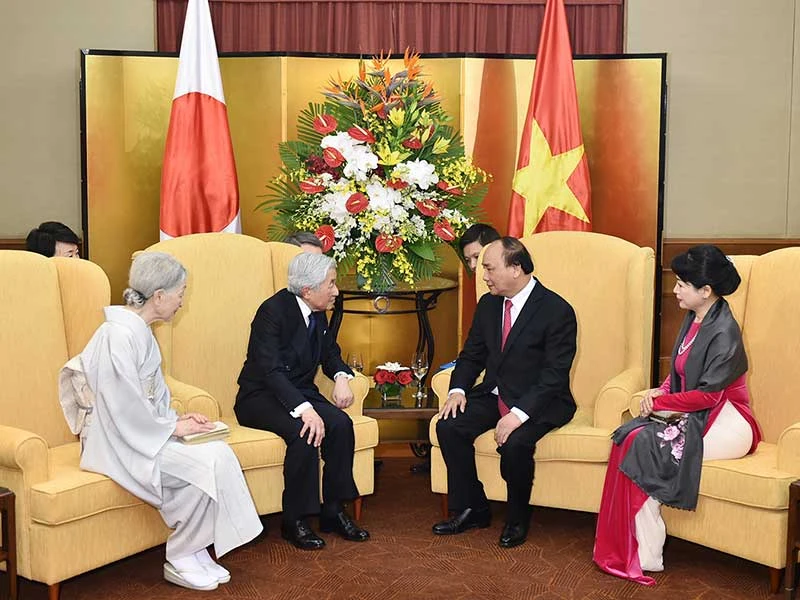 Tại buổi hội kiến (ảnh), Thủ tướng Nguyễn Xuân Phúc và nhà vua Nhật Bản bày tỏ vui mừng trước sự phát triển mạnh mẽ, toàn diện và thực chất trên nhiều lĩnh vực giữa Việt Nam-Nhật Bản trong những năm qua. Người đứng đầu Chính phủ Việt Nam coi đây là dấu mốc quan trọng trong quan hệ hợp tác hữu nghị giữa hai nước, thúc đẩy hợp tác trong nhiều lĩnh vực.
