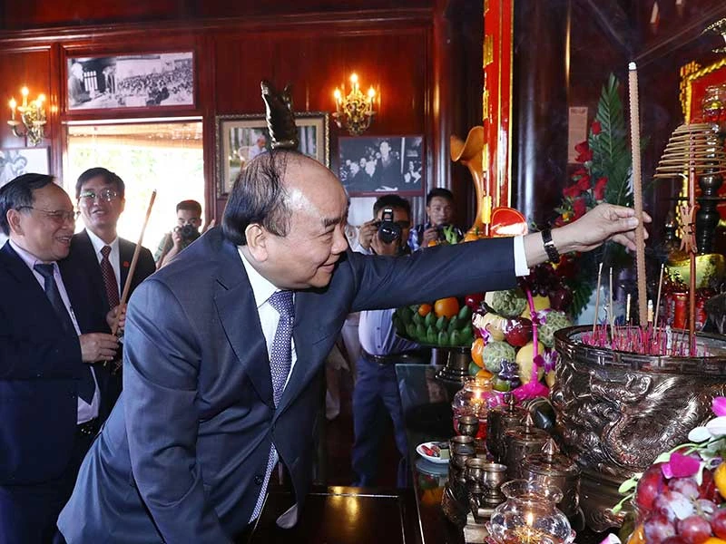 Thủ tướng Nguyễn Xuân Phúc dâng hương tại lễ khánh thành Nhà tưởng niệm Chủ tịch Hồ Chí Minh của Công an tỉnh Đắk Nông. Ảnh: TTXVN