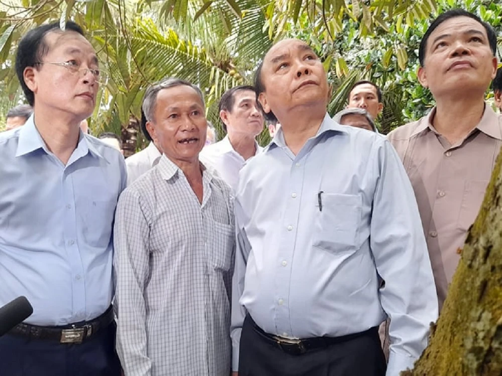 Thủ tướng Nguyễn Xuân Phúc đã khảo sát thực tế một số vườn sầu riêng của nông dân xã Hiệp Đức, huyện Cai Lậy, Tiền Giang. Tại đây, Thủ tướng đã lắng nghe các nông dân nói về những vườn sầu riêng có thu nhập bạc tỉ đồng/ha/năm và những khó khăn trong thời kỳ biến đổi khí hậu, xâm nhập mặn.