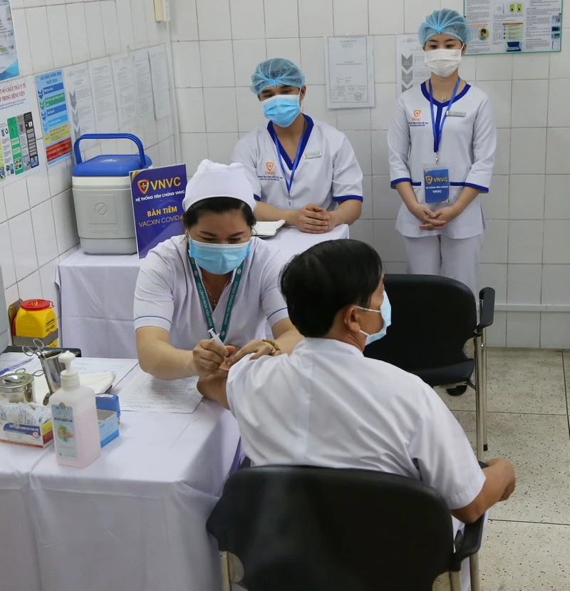 Những liều vaccine COVID-19 đầu tiên đang được tiêm cho bác sĩ điều trị bệnh nhân COVID-19 ở Bệnh viện Bệnh Nhiệt đới TP.HCM. Ảnh: Hoàng Giang