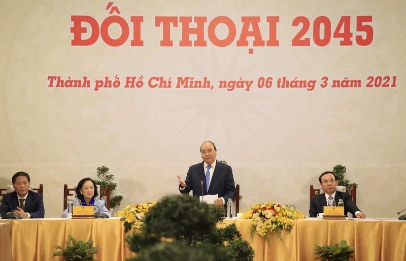 Đây là nhấn mạnh của Thủ tướng Nguyễn Xuân Phúc tại buổi “Đối thoại 2045” với đại diện doanh nghiệp và trí thức tiêu biểu, chiều 6-3 tại Hội trường Thống nhất, TP.HCM.