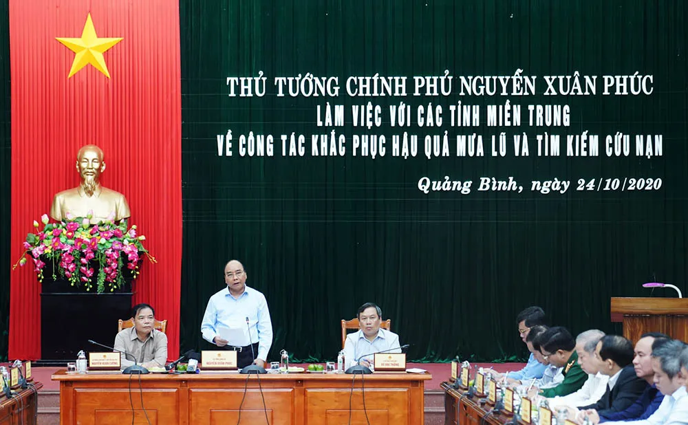 Sau đó, Thủ tướng đã làm việc với lãnh đạo các tỉnh Quảng Bình, Quảng Trị, Quảng Nam, Thừa Thiên - Huế và Hà Tĩnh.
