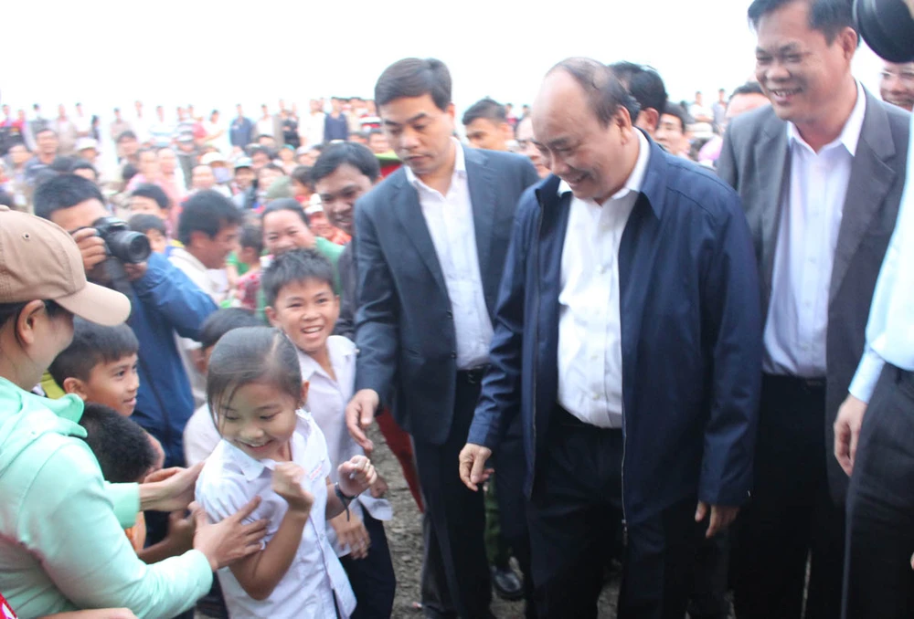 Phát biểu trước đông đảo người dân xã An Phú, Thủ tướng Nguyễn Xuân Phúc ân cần thăm hỏi, chia sẻ với mất mát của người dân trong bão lũ vừa qua. Thủ tướng ghi nhận sự nỗ lực, cố gắng vượt qua khó khăn của người dân, chính quyền địa phương để ổn định cuộc sống sau những thiệt hại lớn do bão lũ.