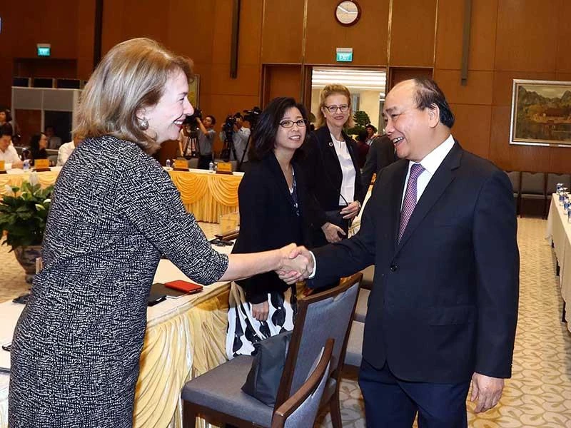 Thủ tướng Nguyễn Xuân Phúc, Trưởng Ban Chỉ đạo quốc gia về hội nhập quốc tế và các đại biểu. Ảnh: TTXVN