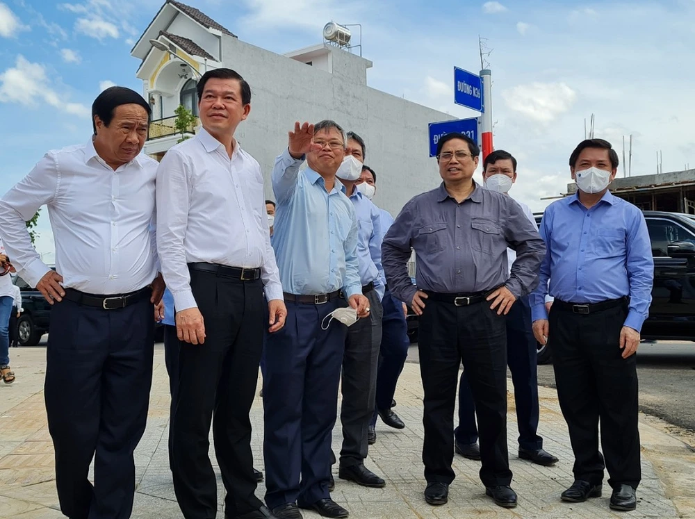 Thủ tướng Phạm Minh Chính kiểm tra Dự án Cảng hàng không quốc tế Long Thành. Ảnh: VŨ HỘI.