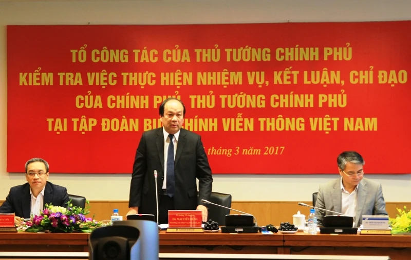 Ngày 15- 3, Bộ trưởng, Chủ nhiệm Văn phòng Chính phủ Mai Tiến Dũng, Tổ trưởng tổ công tác của Thủ tướng Chính phủ, đã dẫn đầu đoàn kiểm tra tình hình thực hiện các nhiệm vụ do Chính phủ, Thủ tướng giao tại Tập đoàn Bưu chính Viễn thông Việt Nam (VNPT).
