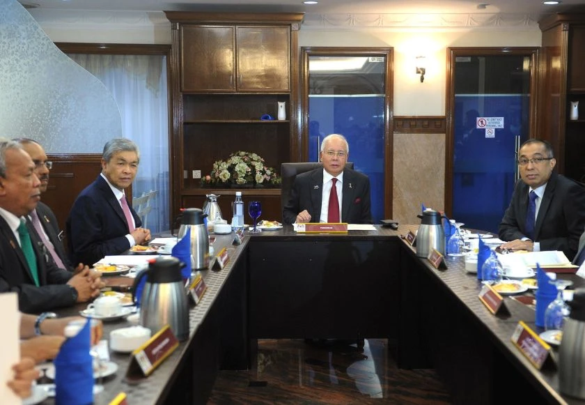 Thủ tướng Malaysia Najib Tun Razak chủ trì cuộc họp khẩn cấp của Hội đồng An ninh quốc gia Malaysia hôm 7-3. Ảnh: BERNAMA