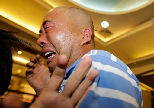 Người nhà hành khách trên chuyến bay bật khóc sau khi nghe thông báo của thủ tướng. Ảnh: Mirror
