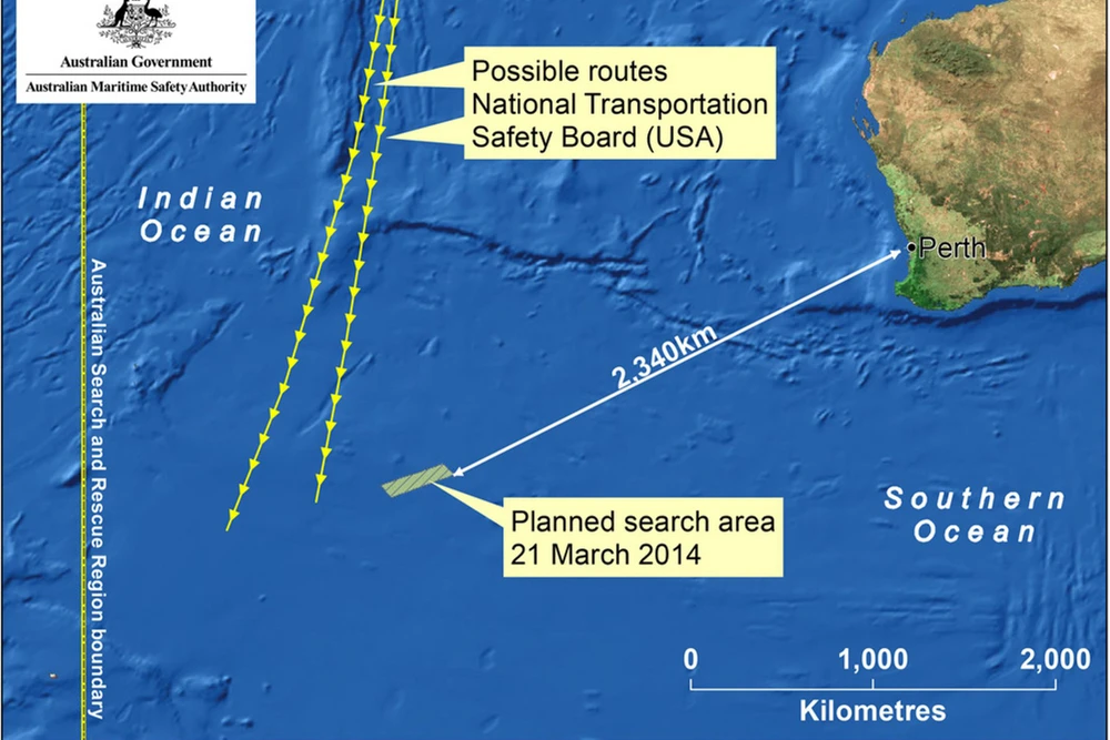 Theo dữ liệu vệ tinh của Cơ quan điều tra tai nạn hàng không Anh Quốc cho thấy chiếc máy bay đã bị rơi ngoài khơi Ấn Độ Dương, phía tây thành phố Perth (Australia). Đây chính là địa điểm các máy bay Trung Quốc, Pháp, Mỹ, Australia bắt gặp những mảnh vỡ trên mặt biển. Trong những ngày tới, lực lượng cứu nạn sẽ tập trung ở khu vực này để tìm kiếm máy bay, quan trọng hơn cả là thu giữ được chiếc hộp đen để trả lời cho mọi câu hỏi của hàng triệu người trong những ngày qua.