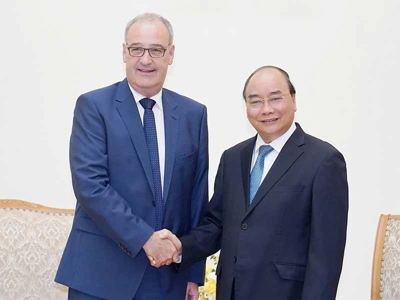 Thủ tướng tiếp Ủy viên Hội đồng Liên bang, Bộ trưởng Kinh tế, Giáo dục và Nghiên cứu Liên bang Thụy Sĩ Guy Parmelin. Ảnh: plo.vn