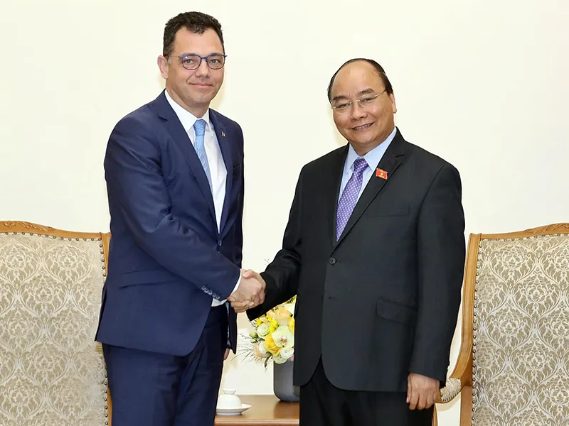 Thủ tướng Nguyễn Xuân Phúc tiếp ông Stefan Radu Oprea, Bộ trưởng Bộ Môi trường kinh doanh, Thương mại và Doanh nghiệp Romania. Ảnh: TTXVN