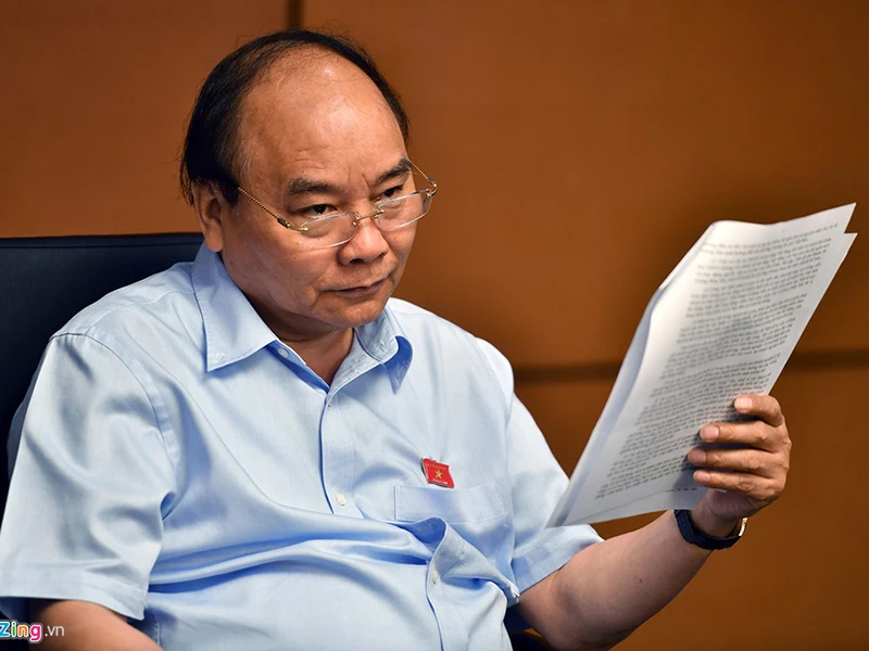 Thủ tướng Nguyễn Xuân Phúc phát biểu tại phiên thảo luận tổ sáng 22-5. Ảnh: HOÀNG HÀ/ZING.VN
