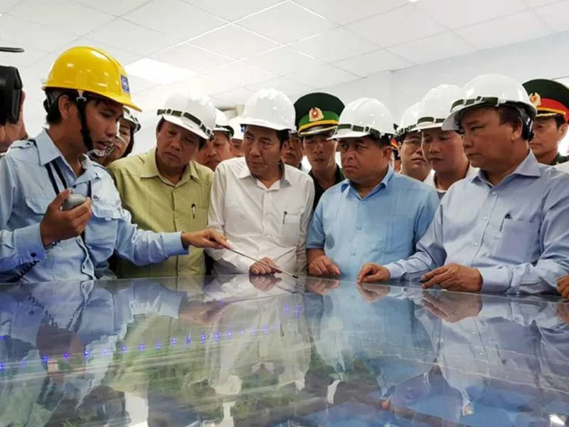 Thủ tướng xem sơ đồ tổng thể khu xử lý môi trường Formosa. Ảnh: TL