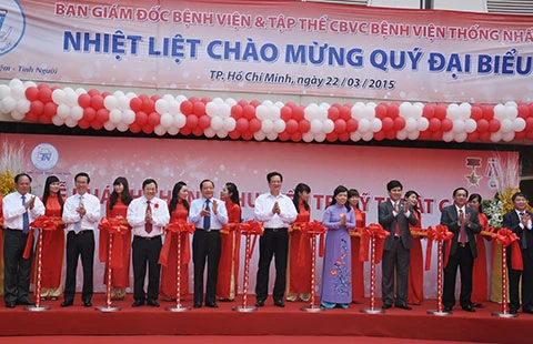 Thủ tướng Nguyễn Tấn Dũng cắt băng khánh thành khu điều trị kỹ thuật cao BV Thống Nhất. Ảnh: TÙNG SƠN