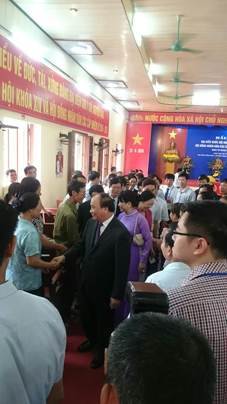 Tại đây, Thủ tướng Nguyễn Xuân Phúc đã dự lễ khai mạc và cùng phu nhân bỏ những lá phiếu đầu tiên tại điểm bầu cử số 8.