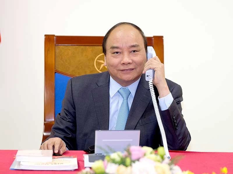 Thủ tướng Chính phủ Nguyễn Xuân Phúc điện đàm với Thủ tướng Nhật Bản Shinzo Abe. Ảnh: VGP/QUANG HIẾU