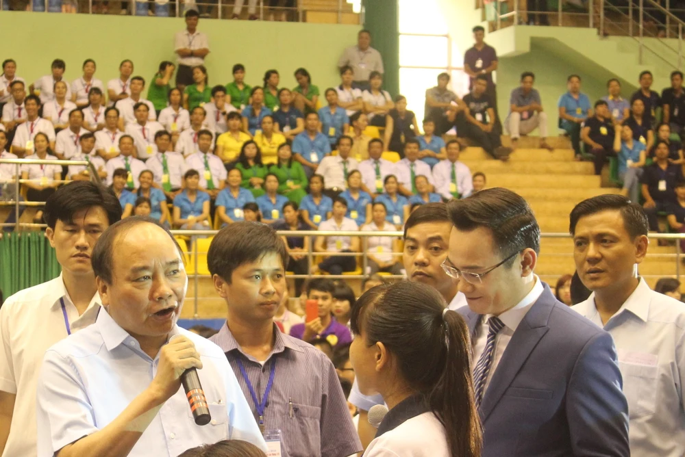 Thủ tướng Nguyễn Xuân Phúc thẳng thắn trả lời công nhân về tiền lương, BHXH, chỗ gửi trẻ…Ảnh: P.ĐIỀN
