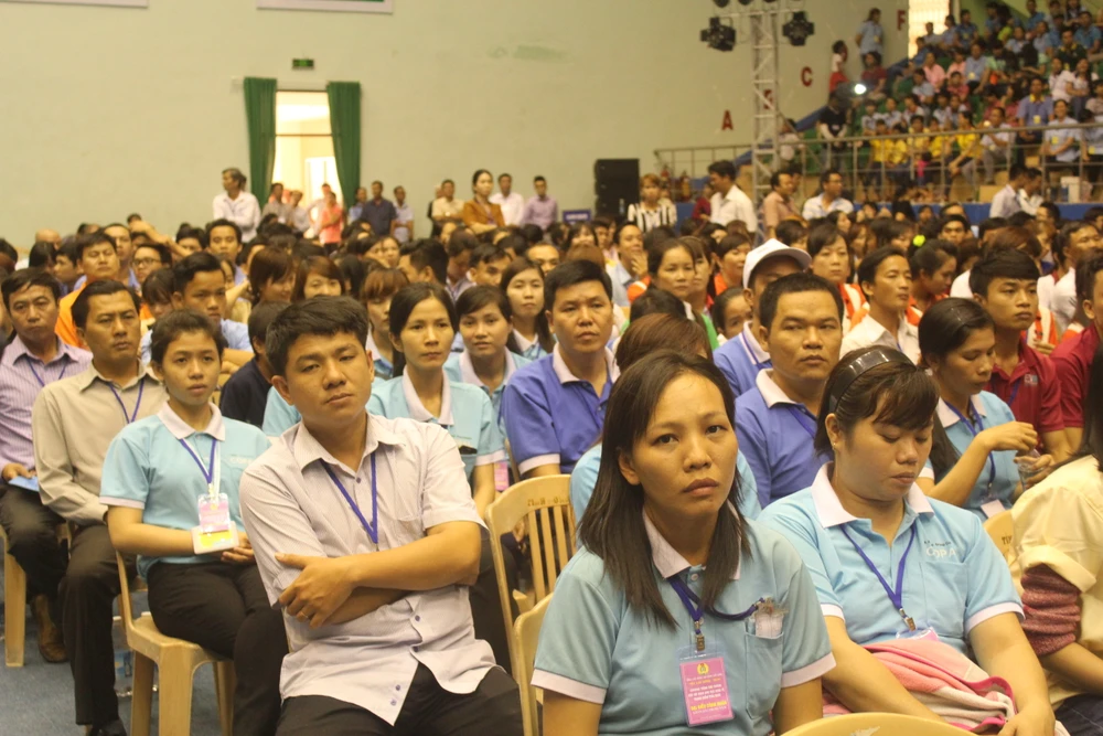 Công nhân lao động đến từ tám tỉnh, thành phía Nam tham dự chương trình gặp gỡ, trao đổi với Thủ tướng, sáng 30-4. Ảnh: P.ĐIỀN