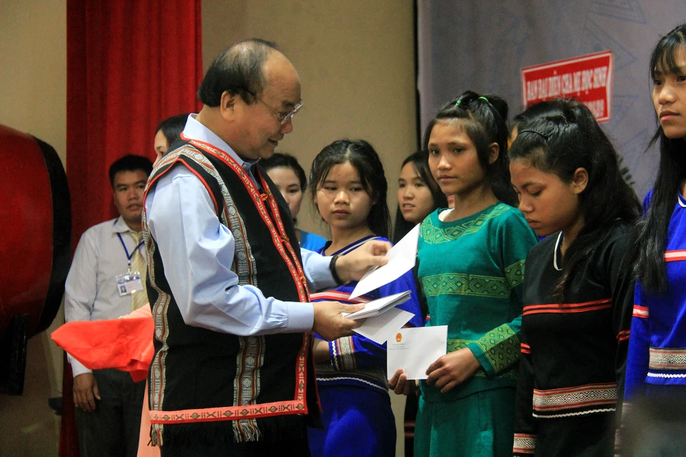 “Hiện cả nước có 319 trường dân tộc nội trú, trong đó Kon Tum có trường dân tộc nội trú ở tỉnh và ở tất cả các huyện. Điều này thể hiện sự quan tâm của Đảng, Nhà nước đối với đồng bào dân tộc thiểu số, trẻ em vùng sâu, vùng xa để các em có điều kiện phát triển trong tương lai” - Thủ tướng phát biểu.