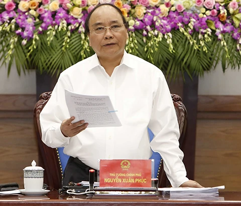 Thủ tướng Nguyễn Xuân Phúc phát biểu tại phiên họp Chính phủ thường kỳ tháng 5. Ảnh: TTXVN
