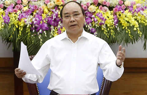 Thủ tướng Nguyễn Xuân Phúc chủ trì phiên họp Chính phủ thường kỳ tháng 4. Ảnh: TTXVN
