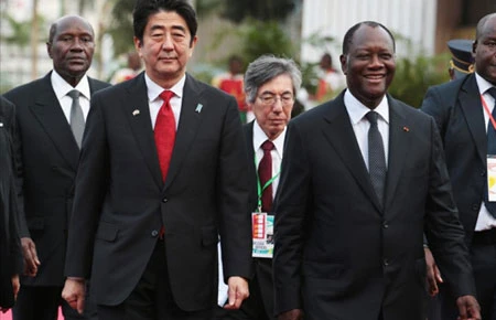 Reuters đưa tin sau hội đàm song phương, tổng thống Bờ Biển Ngà và thủ tướng Nhật (ảnh) đã gặp 10 nguyên thủ quốc gia châu Phi trong hội nghị cấp cao tổ chức tại một khách sạn lớn. Chủ đề của hội nghị là hợp tác giữa Nhật và 15 nước thành viên Cộng đồng kinh tế các nước Tây Phi (ECOWAS). Tổng thống Bờ Biển Ngà đang giữ chức chủ tịch luân phiên tổ chức này.