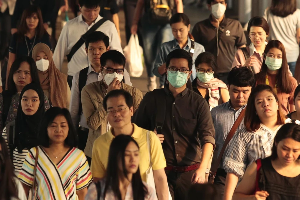 Người dân Bangkok đeo khẩu trang để bảo vệ bản thân khỏi ô nhiễm bụi mịn. Ảnh: BANGKOK POST