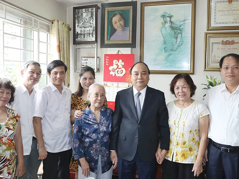 Thủ tướng đã đến thăm hỏi, động viên, chúc sức khỏe cụ Vũ Thị Nhàn, 98 tuổi, trú phường Minh Khai, quận Hai Bà Trưng, mẹ liệt sĩ Trịnh Đình Khôi. Liệt sĩ Trịnh Đình Khôi hy sinh anh dũng tại chiến trường Quảng Trị khi mới 19 tuổi. Đến nay vẫn chưa tìm thấy mộ liệt sĩ.