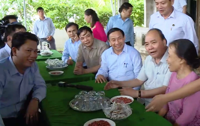 Thủ tướng Nguyễn Xuân Phúc thăm hỏi, động viên người dân thôn Châu Nội (xã Tùng Ảnh, huyện Đức Thọ).