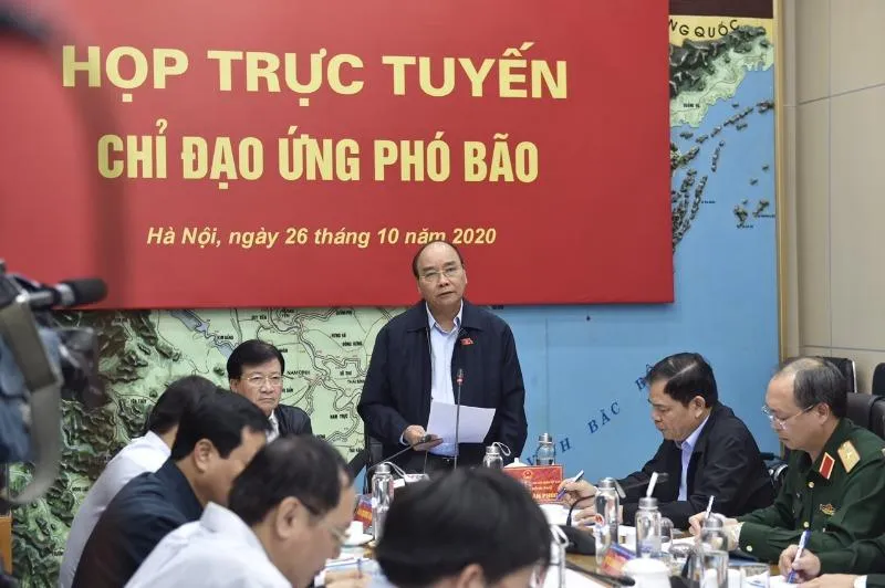 Thủ tướng Nguyễn Xuân Phúc phát biểu chỉ đạo tại cuộc họp ứng phó bão số 9 ngày 26-10. Ảnh: NGỌC HÀ