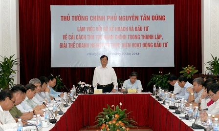 Phát biểu tại cuộc làm việc, Thủ tướng Nguyễn Tấn Dũng đã yêu cầu Bộ Kế hoạch và Đầu tư phối hợp với các Bộ, ngành tiếp tục rà soát và cương quyết ngay trong năm 2014 giảm 50% thời gian thực hiện thủ tục hành chính trong lĩnh vực thành lập, giải thể doanh nghiệp.
